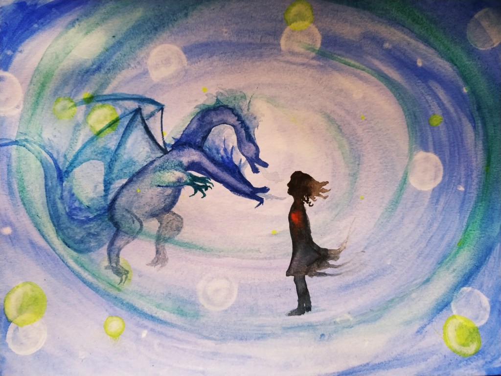 Once upon a time there was a young girl called Lyza, who had gotten captured by the Two-Headed Dragon of Guilt and Shame. The dragon did not capture her in a tower, or in a cave or a lake, but the dragon was always with her, and would attack her throughout her life, so that Lyza never felt safe. She was afraid to make mistakes she could have avoided, because every single time she made a mistake, Guilt would tear up another piece of her Innocence. She was scared to speak out loud or to let herself be seen, because maybe someone would laugh, and then Shame would fall upon her relentlessly, and devour more of her Pride.